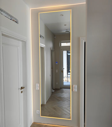 Gaminame įvairių stilių bei dydžių kokybiškus veidrodžius. Kruopščiai apdirbame juos siekiant užtikrinti ilgaamžiškumą. Esant poreikiui, integruojame LED apšvietimą, kuris ne tik pagerina veidrodžio funkcionalumą, bet ir suteikia prabangią bei šiuolaikišką detalę interjerui.
